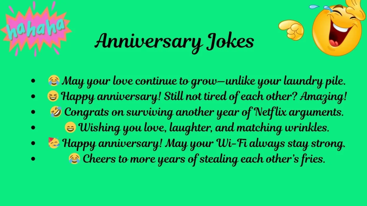 Looking for hilarious anniversary jokes to brighten up your special day? Whether you’re a husband, wife, couple, or even a friend searching for funny anniversary wishes, this list is perfect for you.