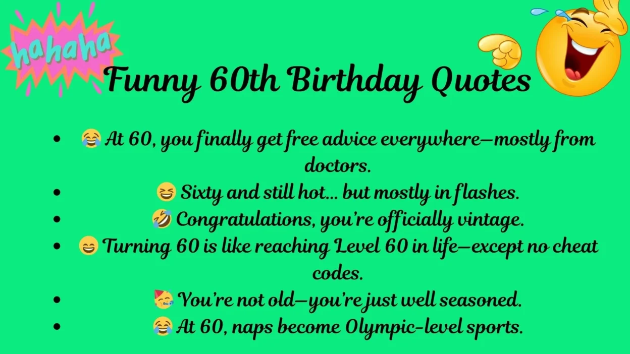 - 😄 Turning 60 is like reaching Level 60 in life—except no cheat codes.