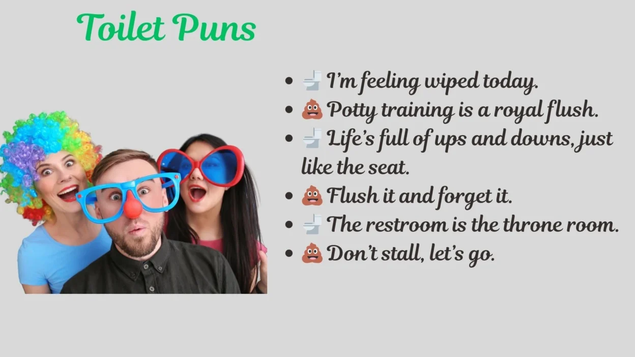 Quick and silly, these short toilet puns are ideal for breaking the ice and sharing a laugh instantly.